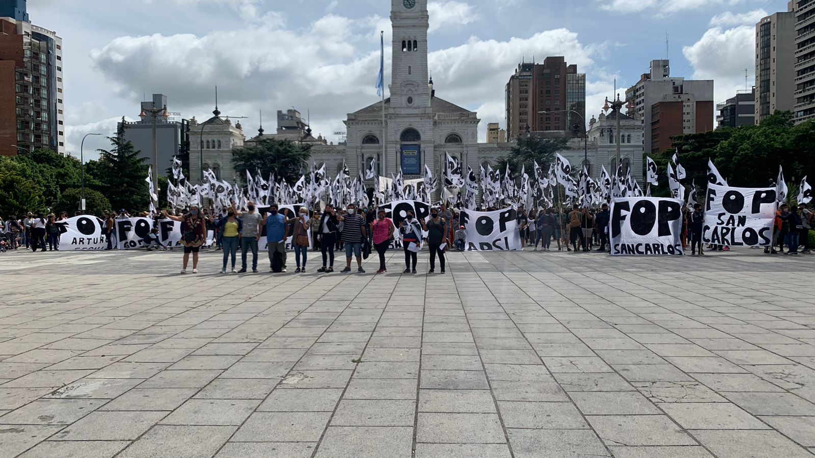Ante la falta de respuesta del Intendente @JulioGarro #hoy llevamos a cabo la tercera movilización con fin de obtener solución de adición de alimentos para #ComedoresYMerenderos que asisten 1800 familias, y puestos de trabajo digno. pic.twitter.com/epIGwJzjJ0— FOP LA PLATA (@FOPLAPLATA1) November 9, 2021