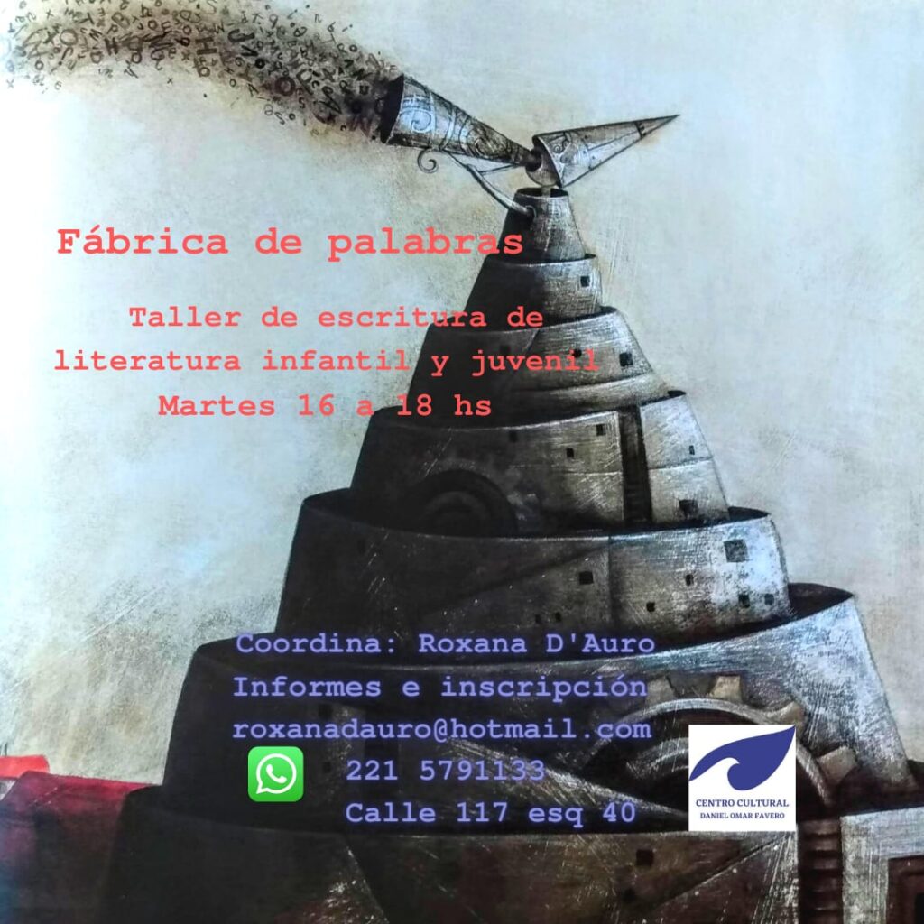 Fábrica de palabras, tal el nombre del taller, buscará desarrollar herramientas narrativas para la escritura de literatura infantil y juvenil. Funcionará los días martes de 16:00h a 18:00h en el espacio ubicado en 117 y 40 de La Plata. Cabe aclarar que las clases serán presenciales, y el taller se dictará durante todo el año.
