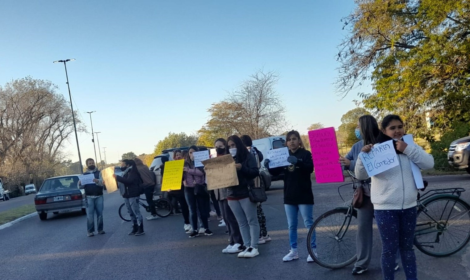 Pancartas, gomas prendidas fuegos, y hablar con las personas que pasaban en sus vehículos hacia la ciudad de La Plata, fueron las estrategias de comunicación que encontraron les manifestantes para dar a conocer la realidad que atraviesan las niñeces. “Queremos que todos los automovilistas se enteren de nuestro reclamo y de la situación que están viviendo nuestros hijos en la escuela 14”, remarcó una madre que se encontraba en el lugar.