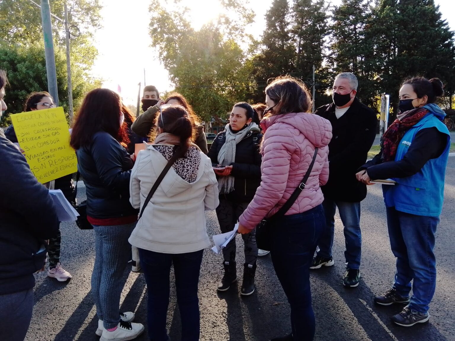 En la mañana de este lunes 2 de mayo, madres y padres de les estudiantes del Colegio Primario N° 14 se manifestaron por la falta de gas, calefacción y destrucción edilicia en la institución. Les xadres cortaron parcialmente Camino Centenario para visibilizar las problemáticas del establecimiento ubicado en calle 423 entre 6 y 7, de Villa Elisa.
