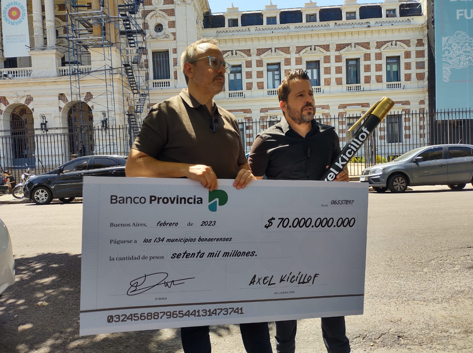 Con un cheque simbólico y una lapicera, Tetaz dijo: “Estamos presentándole al gobernador un cheque con la cantidad de dinero que tiene que devolver La Matanza”. “La lapicera es para que firme el cambio del esquema de coparticipación, que adapte los números de la coparticipación a los números del último censo”, agregó Tetaz. “Sabemos que en el censo del 2010 los números fueron adulterados y que recibió, contando lo de este año, 70 mil millones de pesos de más”, sentenció el diputado nacional.