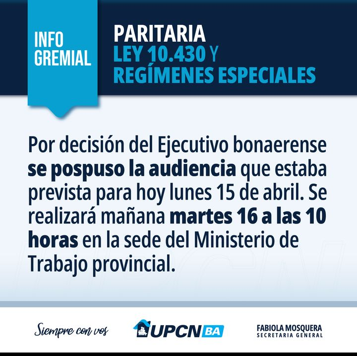 El martes 16 de abril, a partir de las 10:00 horas se reunirán los gremios estatales con el gobierno bonaerense para tratar las paritarias. El encuentro será en el Ministerio de Trabajo ubicado en 7 e/ 39 y 40. Dicho encuentro estaba programado para la mañana de este lunes, pero tuvo que ser reprogramado.