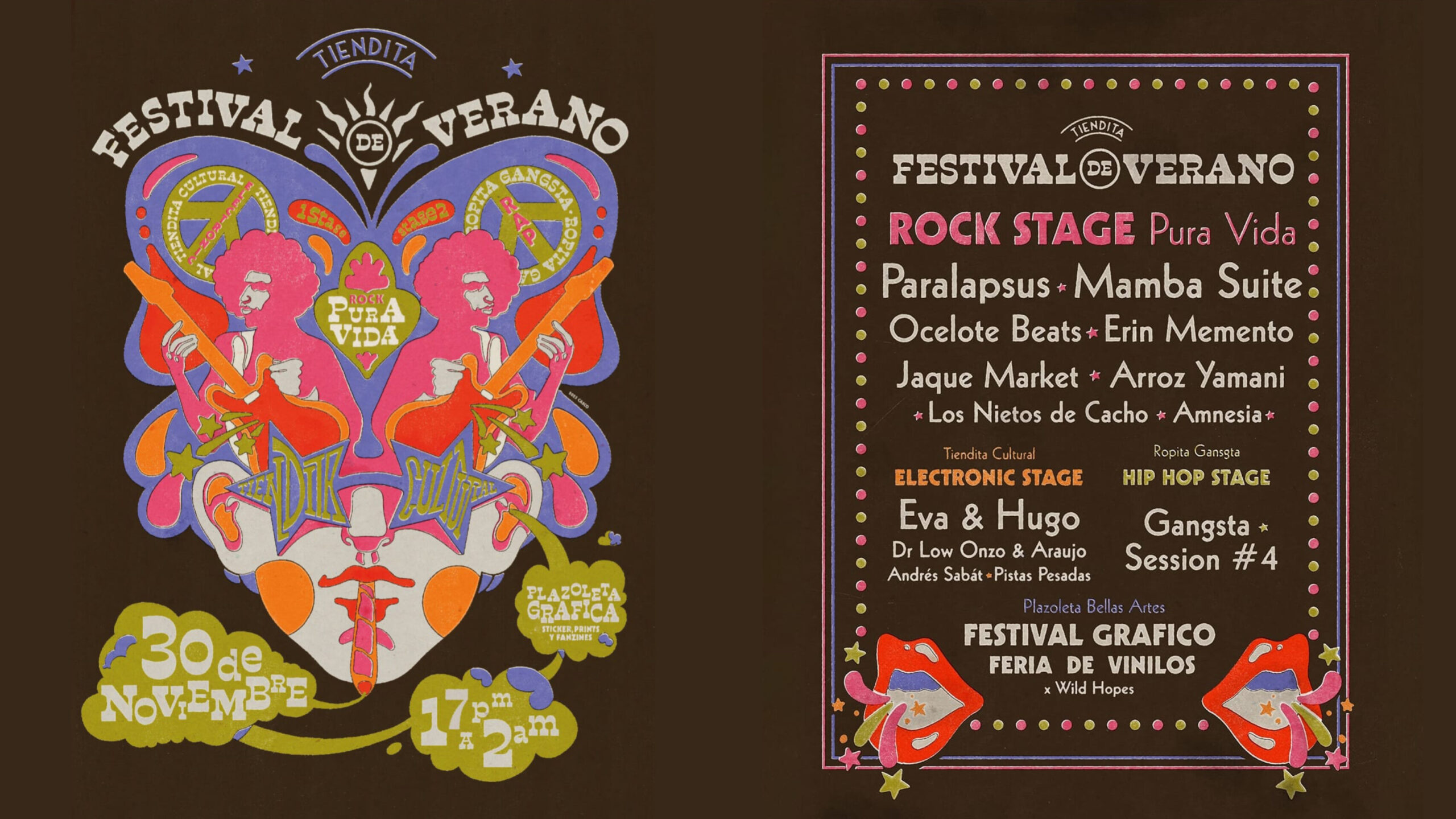 El festival desplegará tres escenarios en simultáneo desde las 17hs y hasta las 2 de la madrugada. En Pura Vida (Diagonal 78 entre 8 y 61) funcionará el Rock Stage, que contará con las presentaciones de Los Nietos de Cacho, Amnesia, Jaque Market, Arroz Yamani, Erin Memento (España), Ocelote Beats, Mamba Suite y Paralapsus.
